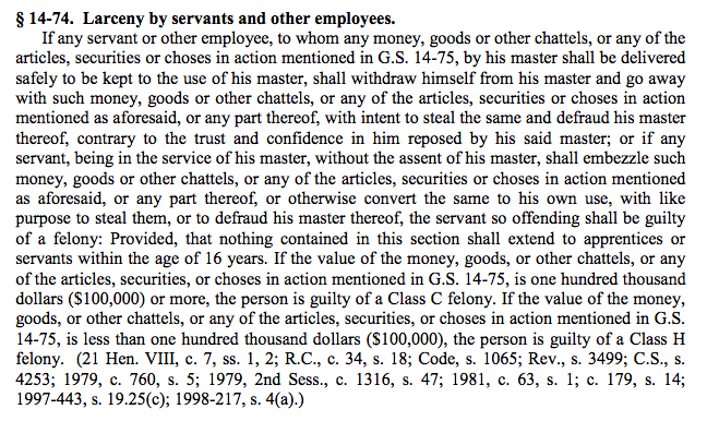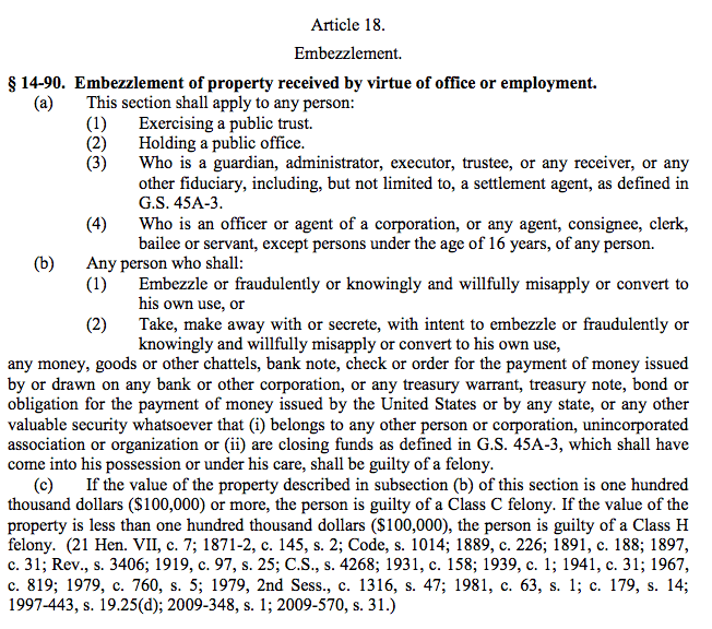 CLICK HERE: Embezzlement Laws in North Carolina 2017