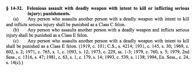 Attempted Aggravated Assault with a Deadly Weapon Inflicting Serious Injury – New North Carolina Crime