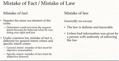 - For a general intent crime, the defendant’s claimed mistake must be a reasonable one, i.e. that a reasonable person would make in similar situations