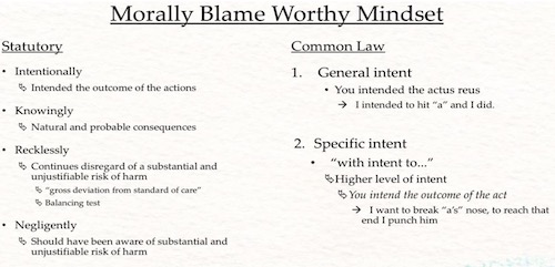 - Identify-What is it? (General Intent, Specific Intent, Model Penal Code, etc.)