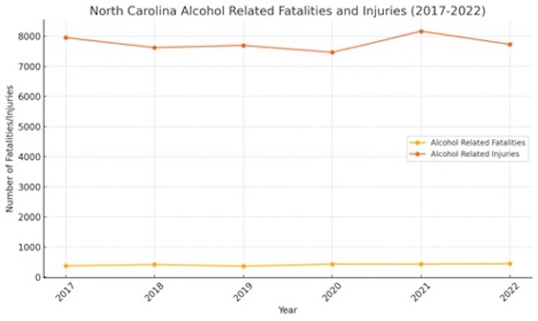 These statistics provide a factual overview of DUI-related incidents in Mecklenburg County over the past six years. They show that while there have been some fluctuations, alcohol-related crashes, injuries, and fatalities remain a persistent issue in the county.