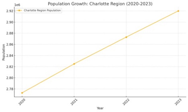 A: As the Charlotte Region nears 3 million residents, infrastructure and law enforcement resources may face increased pressure. While we don't have specific data on DUI enforcement strategies, the population growth data suggests that maintaining and expanding infrastructure will be key for the region. This could potentially include resources for DUI prevention and enforcement, though specific plans would need to be confirmed with local authorities.