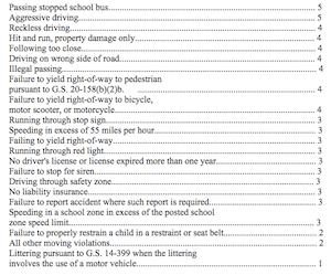 Some offenses carry differing points values, as set forth with the North Carolina General Statutes and per the North Carolina Safe Driver Incentive Plan (SDIP).