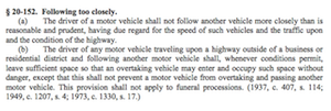 DOWNLOAD NOW: Following Too Closely Law NORTH CAROLINA 2017While tailgating may seem like a pretty minor deal, compared to a serious charge like DUI DWI or hit and run, a conviction for violating the law can still result in a painful insurance increase.